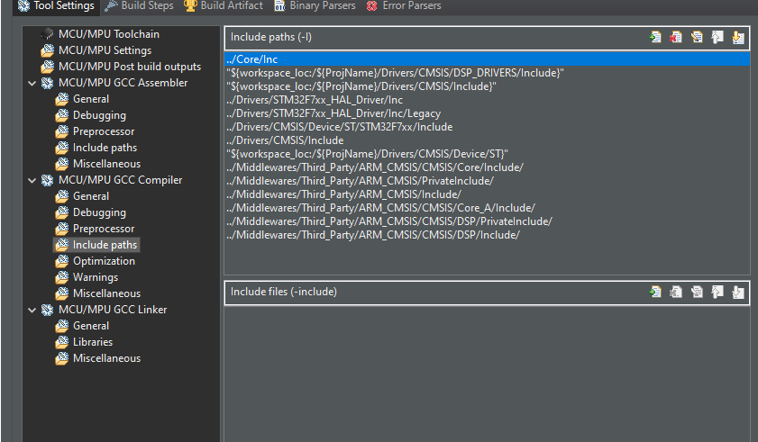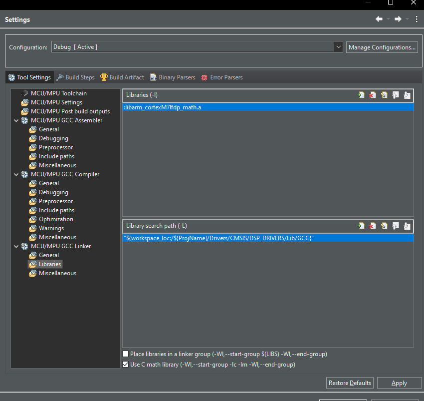 And these were the strings that I added for my compiler and linker: