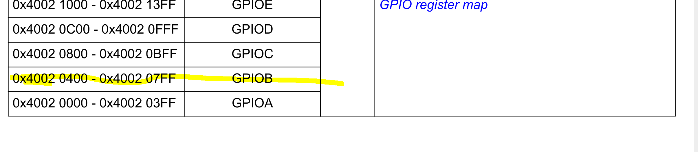And of course the base register for the GPIOB:
