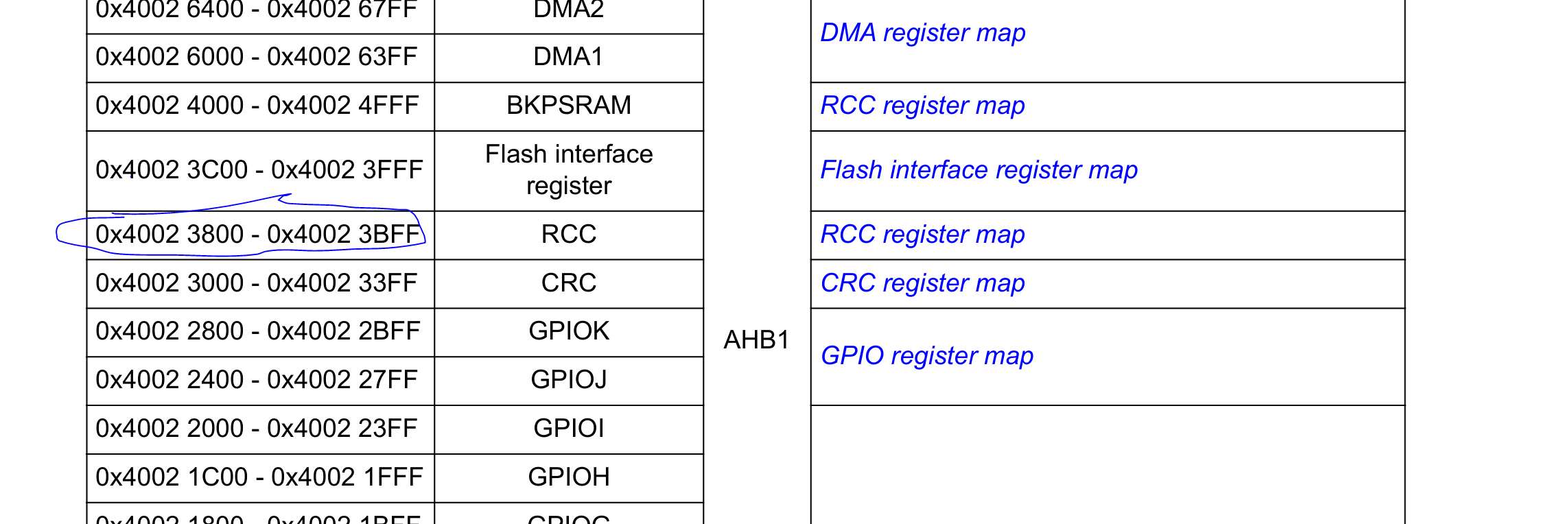 Once I found the register that I needed to modify, I went back to find the base register for the RCC: