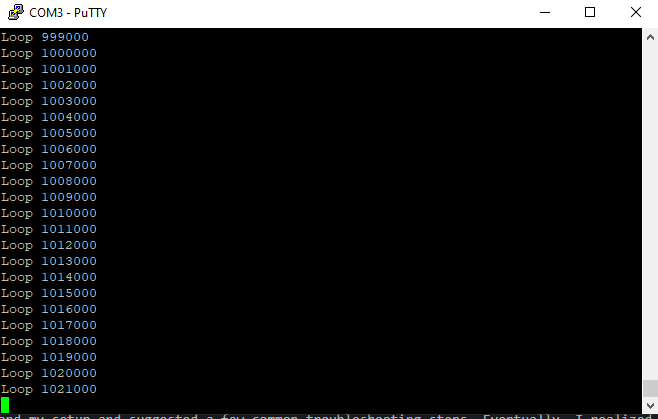 So whereas he was using USART2 in the tutorial, I needed to use USART3. However, even after setting up PuTTY on my machine and listening to the correct COM port on my machine, I still couldn’t see anything. I spent hours fiddling with the code and the baud rate etc.