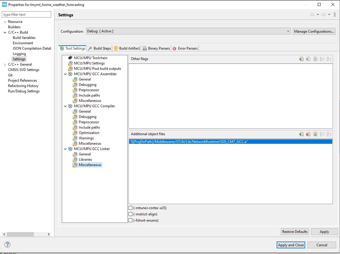 I had some issues with getting the code to generate, and in running the validation at first. The biggest issue was that the linker wasn’t able to find the .a file. I had to add it here to get it to work:
