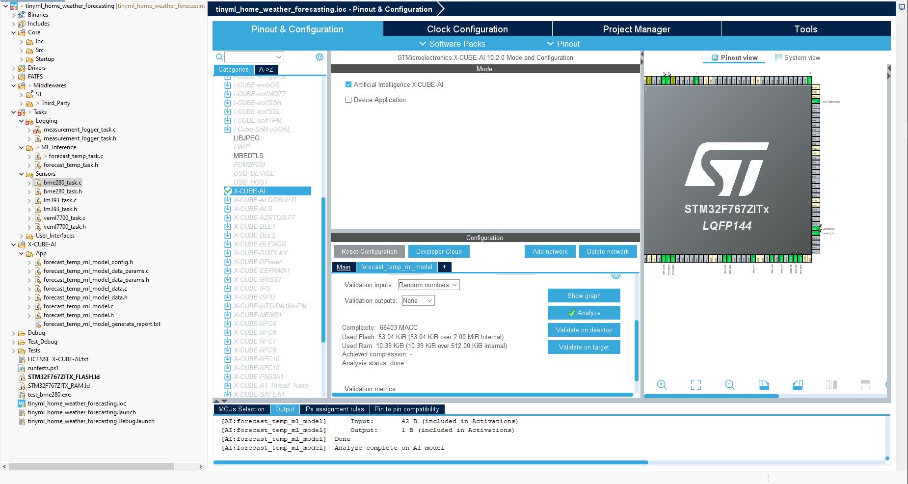 After I saved it, I saw a lot of new C files appear in the project tree under X-CUBE-AI/App.