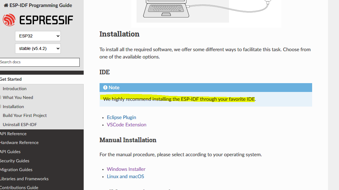 The official instructions on the website turned out to be pretty self explanatory for installing the ESP IDF (Espressif IoT Development Framework). However, as usual, I tried to do my own thing and ended up wasting a bunch of hours. 😅
