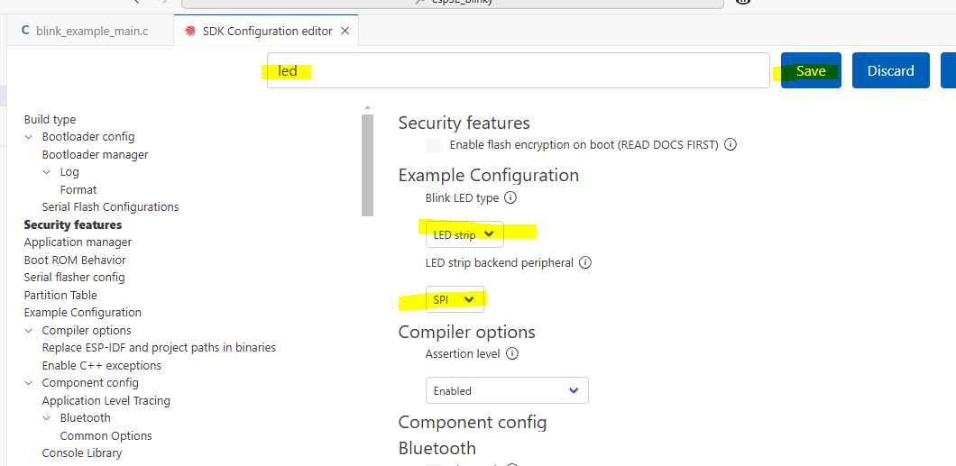 Emboldened by this immediate success, I set up another project for my ‘blinky’ example, and I tried again. Unfortunately, this one had less success. The code was also a bit more complicated, since it had a bunch of these precompilation directive blocks: